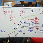 이번 시간에는 아이들이 그린 예시를 보도록 하겠습니다. 학원에서 아이들과 함께 간단한 규칙(색깔에 따라 달라지는 요소)을 알려주고 작업을 시작했습니다.준비물은 간단합니다. 팝보드(종이가 붙어 있는 폼도드)와 4색 매직을 통해 게임 만들기를 진행했습니다. 처음에는 아주 간단한 형태로 시작합니다.하지만 고학년으로 갈수록 선생님도 놀랄 만한 복잡한 형태로 발전하는 경우가 많습니다. 한번 보실까요?^^ 이 친구 같은 경우는 지하에도 다른 맵이 있습니다. 두가지 경로 중 하나를 선택해서 탈출하는 것이 목표입니다. 이 친구의 경우 굉장히 복잡해 보입니다.특히 처음에는 단순한 맵으로 시작해서 조금씩 복잡하게 그림을 그려 나갔습니다.이 과정에서 풍부한 스토리텔링은 덤이겠죠?^^ 작품 ‘파멸의 드래곤’입니다.초록 별에 ..